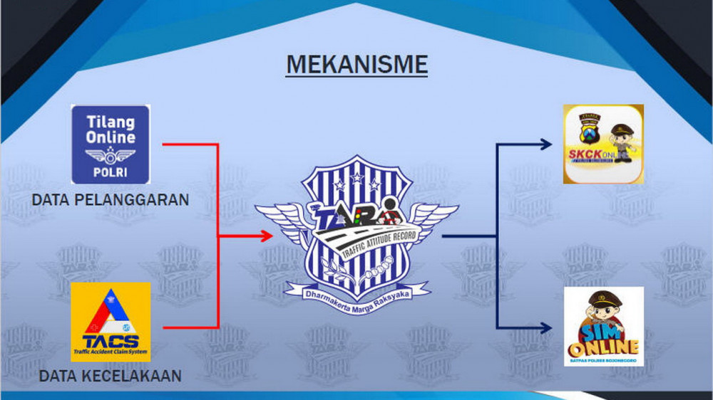 Kasat Lantas Lantas Polres Bojonegoro, AKP Aristianto BS SH SIK MH, kepada awak media ini menjelaskan bahwa dasar pengembangan sistem TAR tersebut adalah Peraturan Kapolri Nomor 9 Tahun 2012, tentang SIM, dalam pasal 73 ayat (1) disebutkan, bahwa penandaan pelanggaran lalu lintas pada SIM dilakukan oleh petugas Polri dengan pencatatan pada pangkalan data regident pengemudi, secara elektronik dan atau manual.