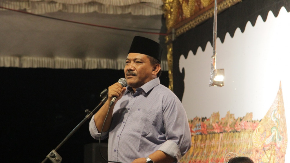 Bojonegoro - Wakil Bupati Bojonegoro, Drs H Budi Irwanto MPd, saat menghadiri pagelaran wayang kulit dalam rangka Hari Jadi Bojonegoro ke 341, di lapangan Desa Malo Kecamatan Malo pada Senin (26/11/2018) malam mengajak warga masyarakat di Kabupaten Bojonegoro agar waspada dan bersama sama menjaga keamanan serta menyukseskan pelaksanaan pemilu 2019.