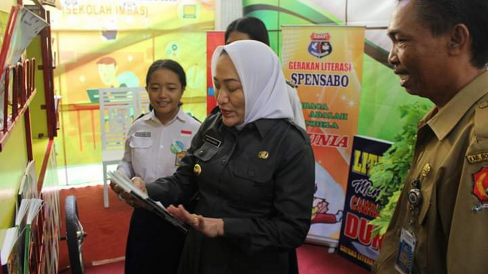 Bojonegoro - Bupati Bojonegoro DR Hj Anna Mu’awanah, pada Senin (03/12/2018) pagi, hadiri acara Open School, Launching 300 Buku dan Pameran Produk, karya siswa, guru dan karyawan, yang diadakan oleh SMP Negeri 1 Bojonegoro.