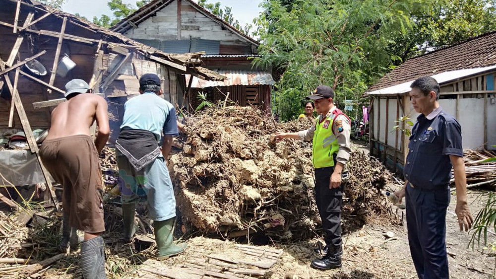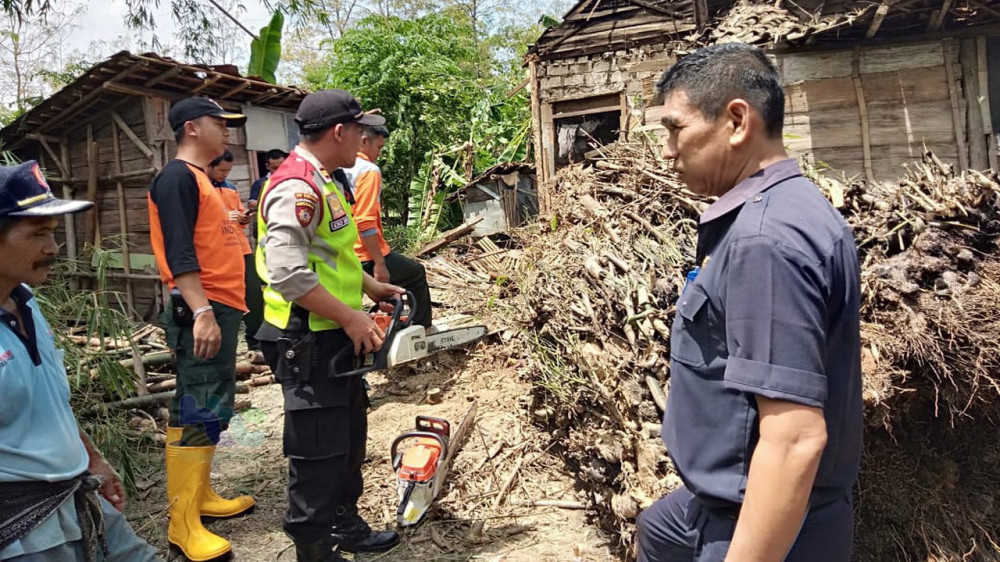 Selanjutnya pada Rabu (05/12/2018) pagi, aparat bersama perangkat desa dan warga setempat mendatangi lokasi kejadian guna membantu melakukan pemotongan dan pembersihan rumpun bambu yang roboh tersebut.