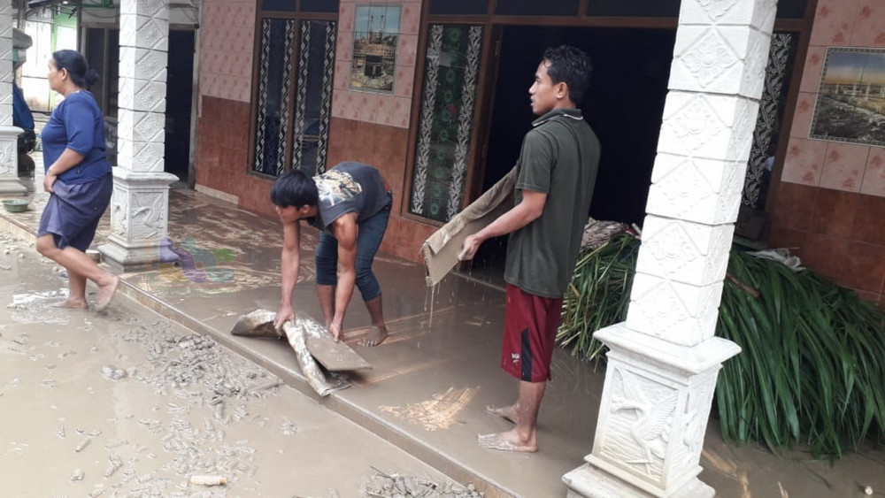 “Saat ini air sudah surut. Warga mulai membersihkan rumah dari lumpur,” pungkas Kapolsek.