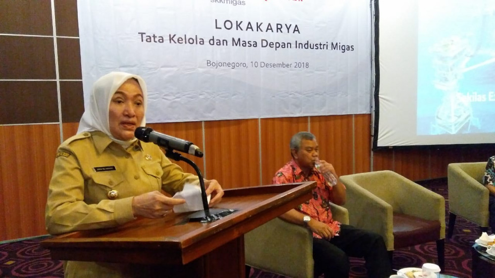 Bojonegoro - Bupati Bojonegoro DR. Hj. Anna Mu’awanah pada Senin (10/12/2018) pagi, hadiri Lokakarya Tata Kelola dan Masa Depan Industri Migas yang digelar di salah satu hotel yang di Bojonegoro.