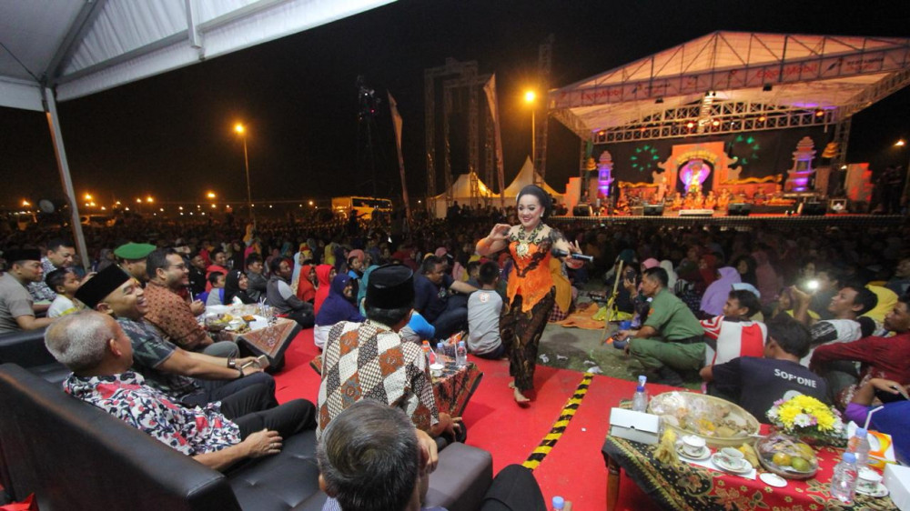 Semua mata tertuju pada panggung besar di tengah. Penabuh gamelan dan para sinden bersautan menyulam irama merdu nan atraktif. Mereka nampak sangat memukau hingga tak satu pun penonton yang bergerak teralihkan. Bahkan tidak ada riuh percakapan yang mengganggu syahdunya musik dan nyayian.