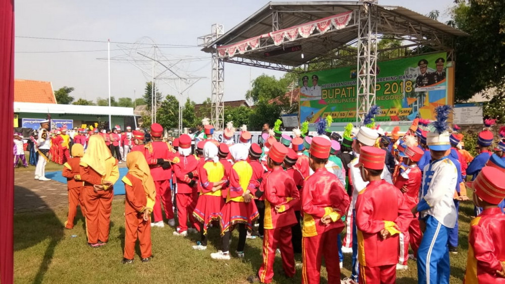 Bojonegoro - Persatuan Drum Band Indonesia (PDBI) Pengkab Bojonegoro bekerjasama dengan Pemerintah Kabupaten Bojonegoro dan Polres Bojonegoro, menggelar Kejuaran Drum Band / Marching Band, Bupati Cup 2018. Sebanyak 50 grup drum band mulai tingkat TK, SD, SLTP dan SLTA, se Kabupaten Bojonegoro turut mengikuti kejuaraan tersebut