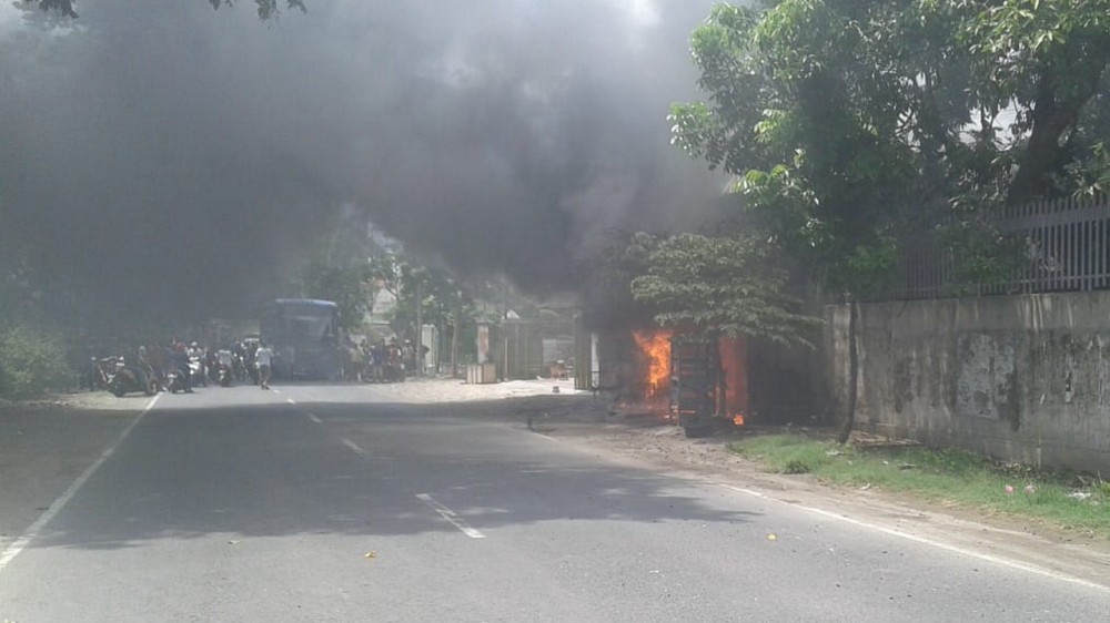 “Api tersebut membesar dan membakar seluruh isi bengkel. Kemudian api tersebut menjalar dan membakar toko pakan burung, yang persis berada di sebelahnya.” tutur Kapolsek.