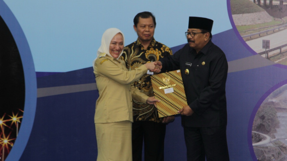 Surabaya - Bupati Bojonegoro Dr Hj Anna Muawanah, pada Senin (17/12/2018) pagi, hadiri acara Penyerahan Daftar Isian Pelaksanaan Anggaran (DIPA), Anggaran Pendapatan dan Belanja Negara (APBN) Wilayah Provinsi Jawa Timur Tahun Anggaran 2019, di Gedung Grahadi Surabaya.