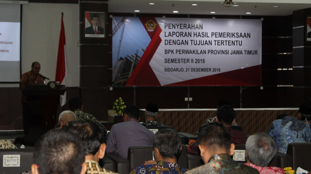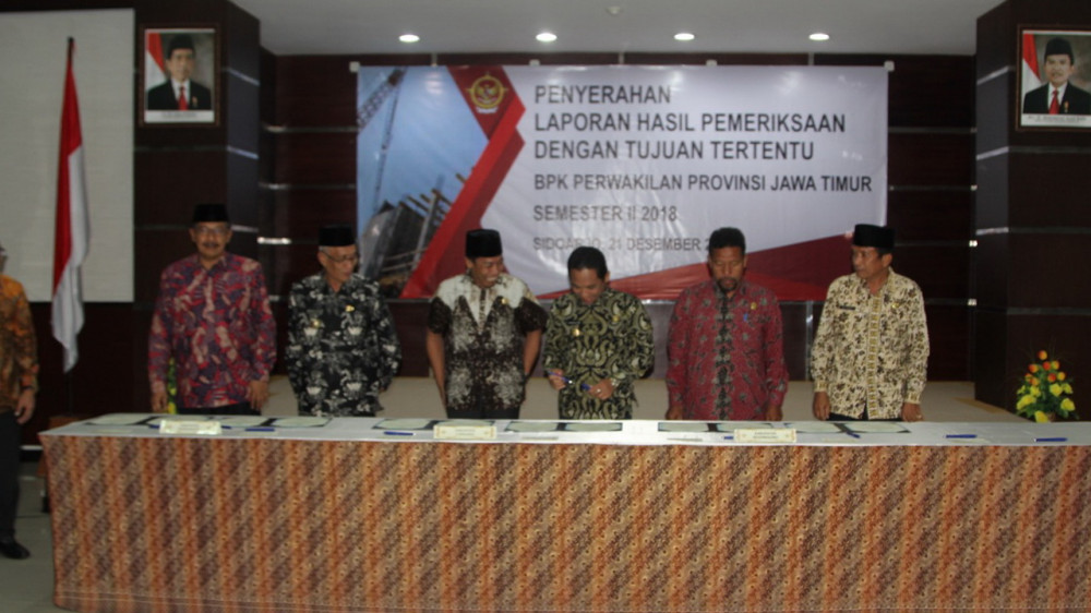 Sidoarjo- Wakil Bupati Bojonegoro, Drs Budi Irawanto MPd, pada Jumat (21/12/2018), hadiri penyerahan laporan hasil pemeriksaan dengan tujuan tertentu semester dua, dari BPK Perwakilan Jawa Timur.