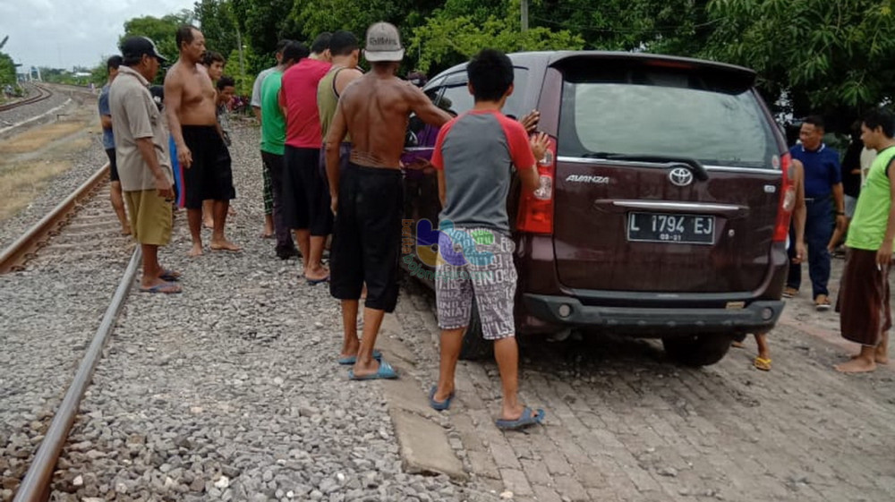 Hendak Melintasi Rel,Toyota Avanza di Bojonegoro Diserempet Kereta Api