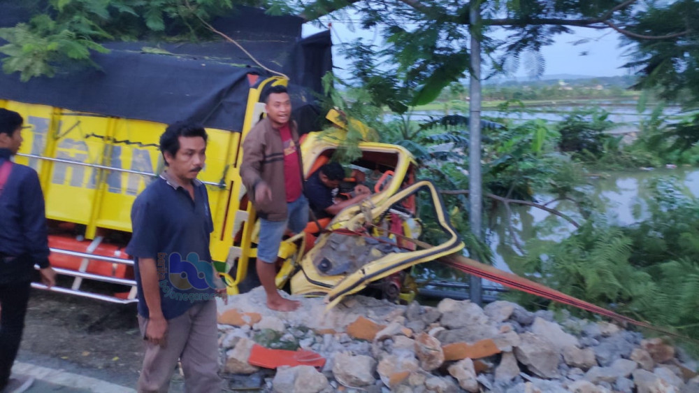 Diduga Pengemudi Mengantuk, Truk di Baureno Tabrak Tembok Batas Desa