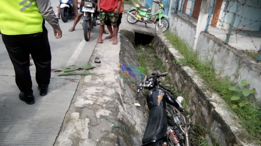 “Pengendara berikut sepeda motor Honda GL Max terjatuh di selokan air. Sedangkan pengendara sepeda motor C70 jatuh di jalan raya.” kata Kapolsek menambahkan.