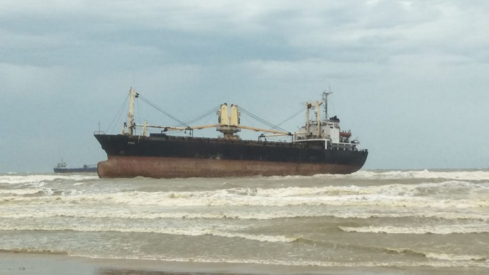 Kapal milik agen PT. Varia Usaha Lintas Negara dengan nomor lambung IMO-8506000 berkapasitas 8.500 ton yang terdampar di pesisir pantai Tanjung Awar-awar Desa Tasikharjo Kecamatan Jenu Tuban