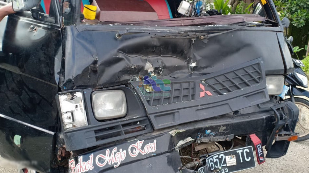 Kendaraan Mitsubishi L300 pikap nomor polisi H 1852 TC, yang terlibat laka lantas di jalan raya Bojonegoro - Ngawi, turut Desa Bakalan Kecamatan Ngraho Bojonegoro, Rabu (30/01/2019)