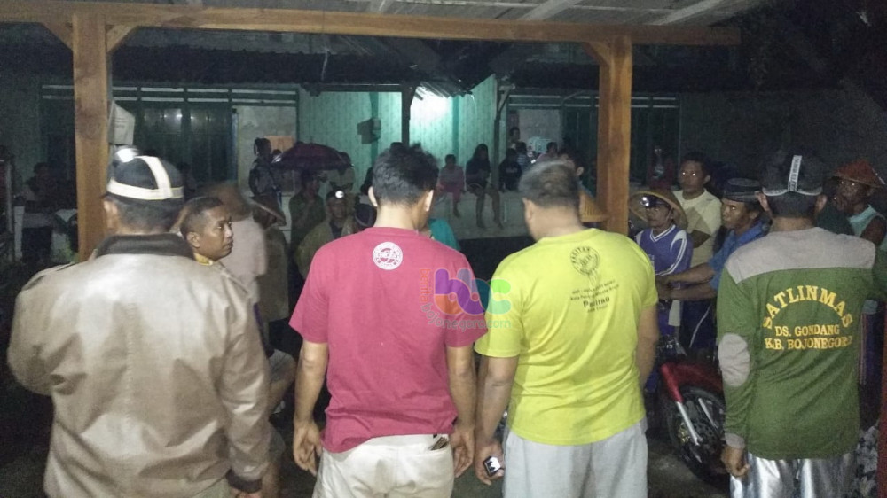 Aparat dari forpomca Gondang bersama perangkat desa dan warga setempat, melakukan koordinasi di rumah salah satu perangkat desa setempat, Kamis (31/01/2019) malam.