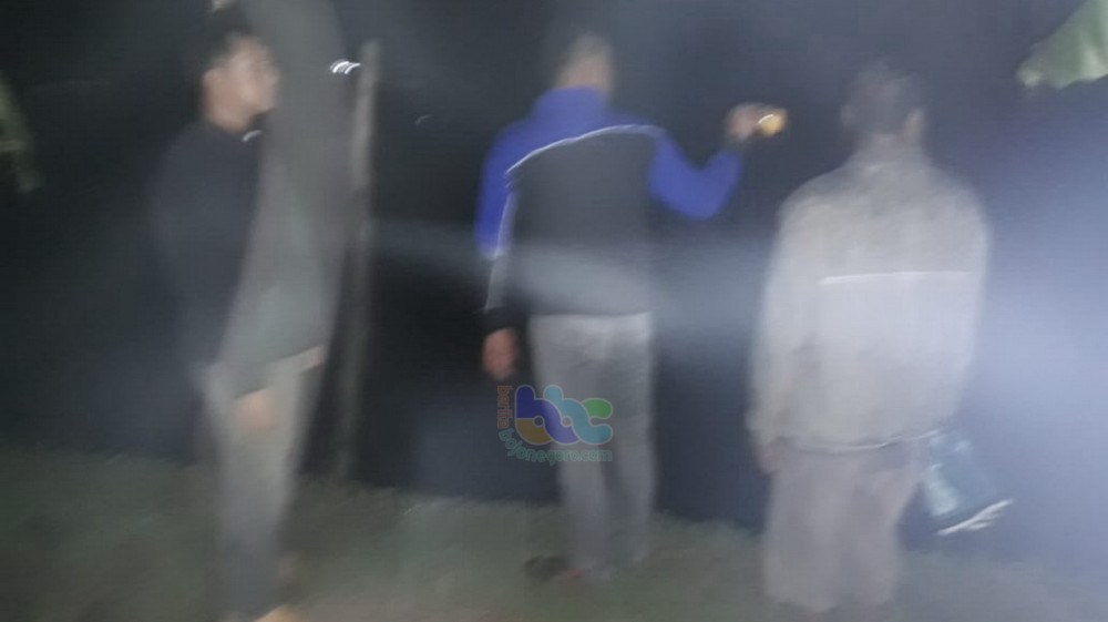 Aparat setempat, saat melakukan pengamatan di lokasi kejadian tenggelamnya Suwarno (46), warga Desa Kabalan RT 001 RW 004 Kecamatan Kanor Kabupaten Bojonegoro, Sabtu (09/02/2019) malam.