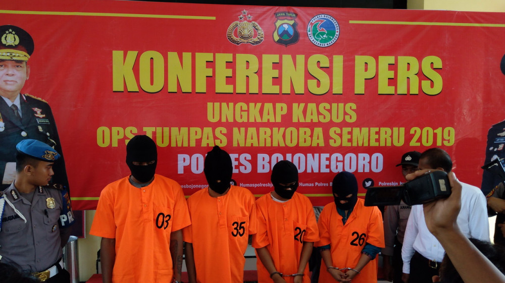 Adapun identitas keempat pelaku adalah TS (48) seorang perempuan, warga Kecamatan Temayang Kabupaten Bojonegoro, kemudian ARN (26) dan GSAR (22), keduanya warga Kecamatan Babat Kabupaten Lamongan, serta M (27) warga Desa Kedongarum Kecamatan Kanor Kabupaten Bojonegoro.