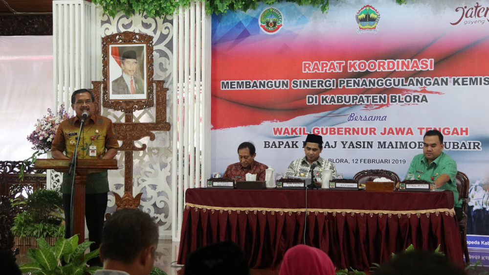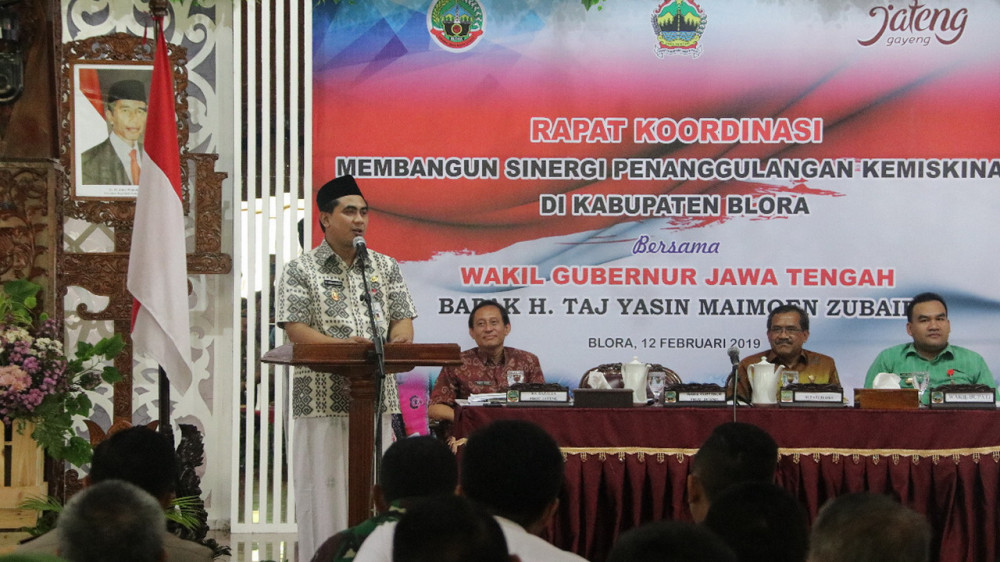 Blora - Wakil Gubernur (Wagub) Jawa Tengah H Taj Yasin Maimoen Zubair, pada Selasa (12/02/2019) hadiri Rapat Koordinasi dalam rangka Membangun Sinergi Penanggulangan Kemiskinan di Pendopo Rumah Dinas Bupati Blora.