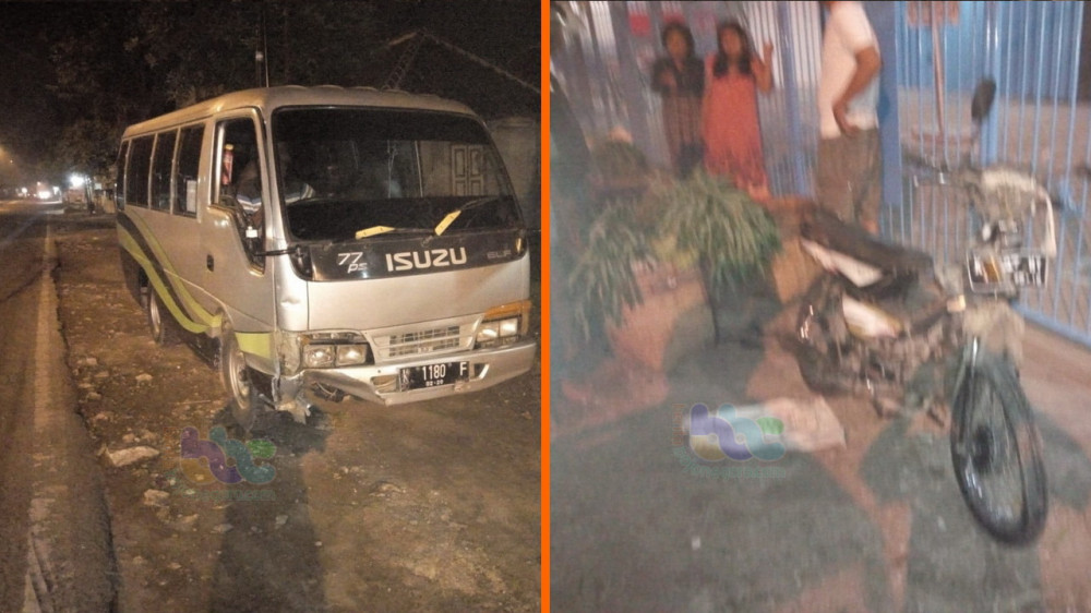 Pada saat yang bersamaan, melaju kendaraan minibus Isuzu Elf nomor polisi K 1180 F, dari arah berlawanan atau dari barat ke timur.