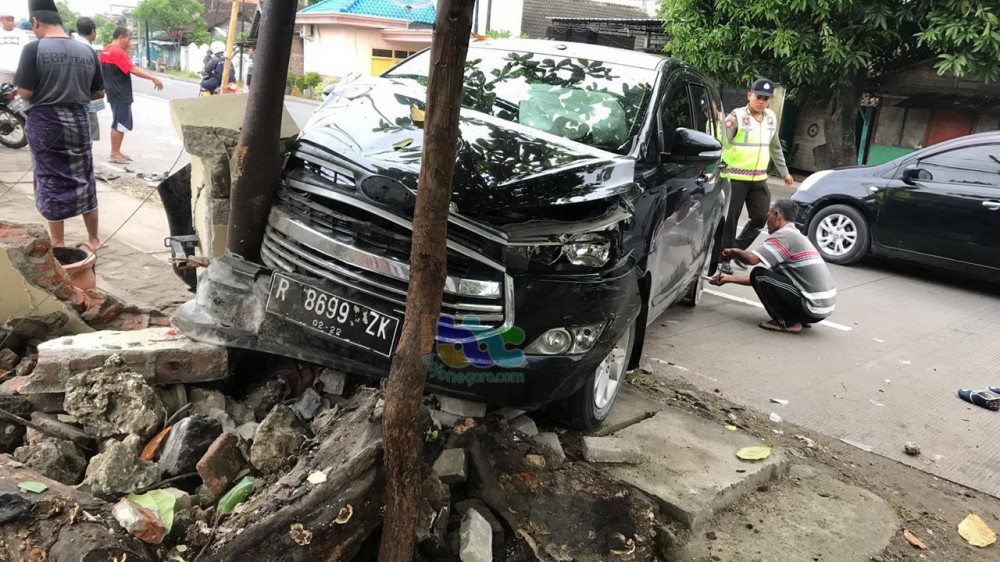 Setelah terjadi tabrakan, kendaraan Toyota Kijang Innova tersebut masih terus melaju ke arah selatan atau kanan jalan, hingga akhirnya terhenti setelah menabrak pagar tembok Markas Polsek Kalitidu.