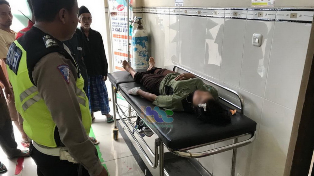 Pengendara sepeda motor Honda Beat nomor polisi S 2837 AO, Munik (36), warga Desa Tulung Agung RT 013 RW 007 Kecamatan Malo Kabupaten Bojonegoro, saat dalam perawatan di RSMuhammadiyah Kalitidu, Jumat (15/02/2019).