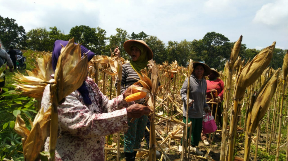 Panen raya jagung di Lokasi Hutan Perhutani RPH Kalisari Jati Gong, Desa Jatiklampok Kecamatan Banjarejo Blora, Selasa (19/02/2019)