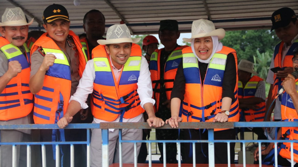 Wakil Gubernur Jawa Timur, Dr Emil Elestianto Dardak MSc bersama rombongan, saat laksanakan penyusuran di aliran sungai Bengawan Solo. Selasa (19/02/2019)
