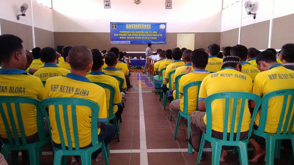 Sebelum menjalani tes urine, para napi dikumpulkan di aula rutan untuk mendapatkan sosialisasi, terkait ancaman hukuman bagi pelaku penyalahgunaan nerkoba, sesuai dengan UU RI Nomor 35 Tahun 2009 tentang narkotika.