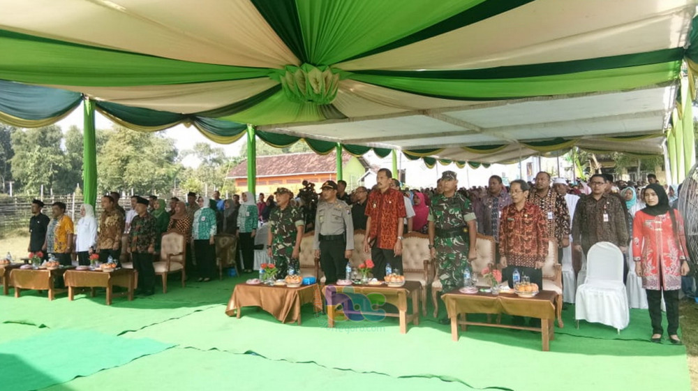 Bupati Bojonegoro Dr Hj Anna Muawanah, bersama tamu undangan saat hadiri acara penyerahan sertifikat Program PTSL di Lapangan Desa Ngraho Kecamatan Gayam, Kabupaten Bojonegoro. Jumat (22/02/2019)