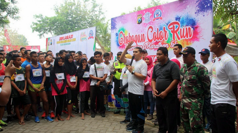 Bojonegoro - Sat Lantas Polres Bojonegoro pada Minggu (24/02/2019) pagi, menggelar acara Grobogan Colour Run - Running Marathon 5K, yang dipusatkan di tempat wisata Waduk Grobogan Desa Bendo Kecamatan Kapas Kabupaten Bojonegoro.