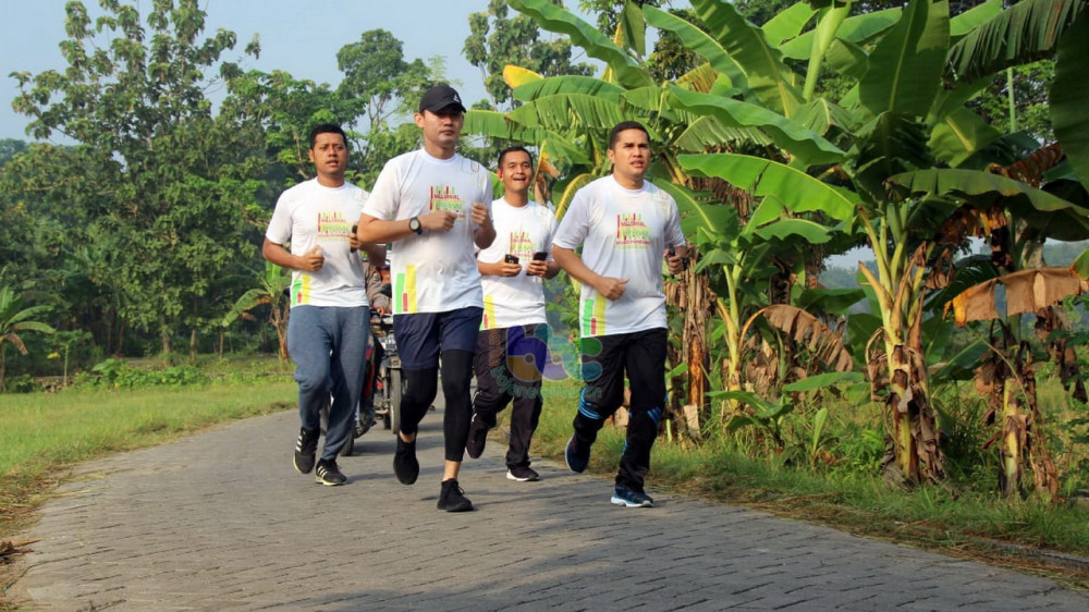 Kapolres Bojonegorp AKBP Ary Fadli SIK MH MSi, didampingi Kasat Lantas Polres Bojonegoro AKP Aristianto BS SIK SH MH dan pejabat Polres Bojonegoro, saat ikuti Grobogan Colour Run - Running Marathon 5K, Minggu (24/02/2019)