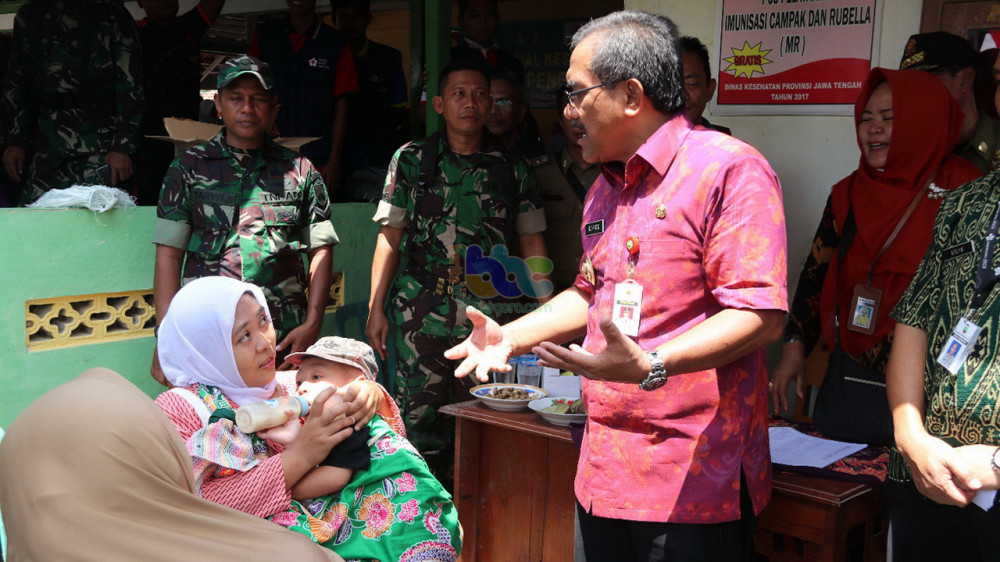 Bupati Blora, H Djoko Nugroho, saat kunjungi bhakti sosial pengobatan gratis dalan giat TNI Manunggal Membangun Desa (TMMD) Reguler ke-104 Kodim 0721 Blora di Desa Jurangjero Kecamatan Bogorejo, Selasa (26/02/2019).