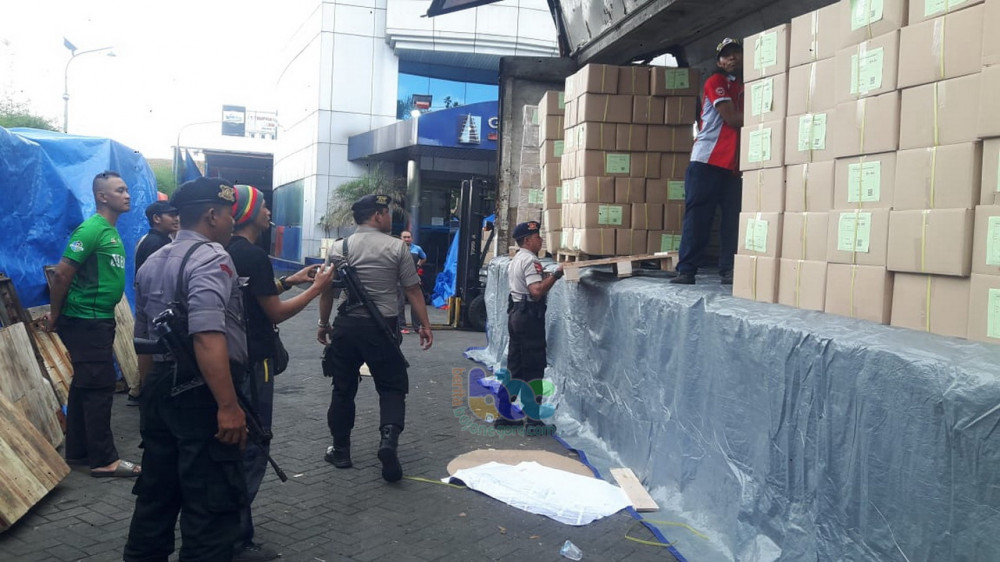 Logistik Pemilu 2019 , yang dikirim dari percetakan PT Temprina Media Grafika, Semarang, tiba di Gudang KPU Bojonegoro. Kamis (28/02/2019).