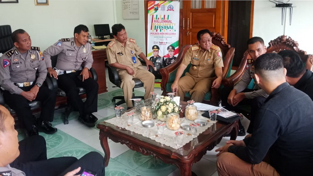 Jajaran Sat Lantas Polres Bojonegoro bersama Pemkab Bojonegoro dan manajemen SCTV, lakukan rapat koordinasi. Senin (04/03/2019)