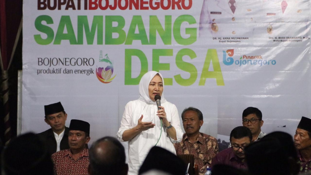 Bojonegoro - Bupati Bojonegoro, Dr Hj Anna Muawanah, pada Selasa (12/03/2019), hadiri acara Sambang Desa di Desa Jati Blimbing Kecamatan Dander. Kegiatan tersebut digelar dalam rangka untuk mendengar langsung apa yang menjadi aspirasi masyarakat di desa.