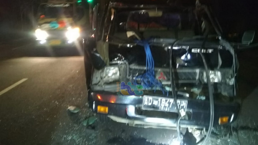 Kendaraan Mitsubishi L300 pikap, menabrak dari belakang kendaraan truk yang berjalan searah di depannya, sehingga pengemudi berikut seorang penumpangnya terjepit body depan mobil mengakibatkan keduanya mengalami luka berat.