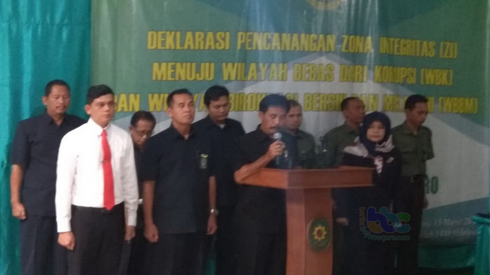 Bojonegoro - Pengadilan Agama (PA) Bojonegoro, pada Jumat (15/03/2019) pagi, laksanakan deklarasi Pencanangan Pembangunan Zona Integritas, menuju Wilayah Bebas Korupsi (WBK) dan Wilayah Birokrasi Bersih dan Melayani (WBBM).
