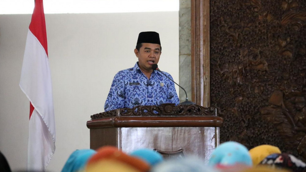 Kepala Dinas P3AKB, Adie Witjaksono SSos MSi, saat berikan sambutan dalam acara deklarasi dan pengukuhan Satgas PPA Kabuapten Bojonegoro. Senin (18/03/2019)
