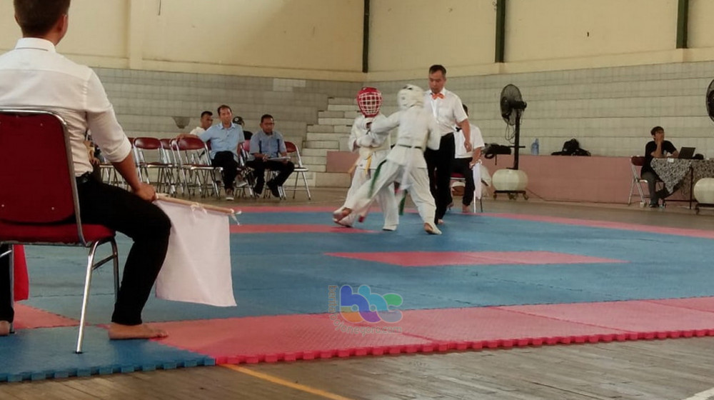 Atlet karate dari Kyokushinkai Dojo Ngawen Blora, saat bertanding di kejuaraan Piala Walikota Semarang, di GOR Satria Semarang, Minggu (17/03/2019).