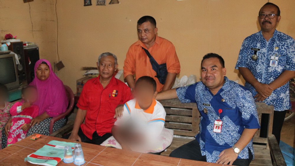 Wakil Bupati Blora, H Arief Rohman MSi, saat berkunjung ke rumah Ahmad Romadhon (14), di Dukuh Bendo Genen Desa Sendangwungu RT 007 RW 002 Kecamatan Banjarejo Blora, Rabu (20/03/2019)