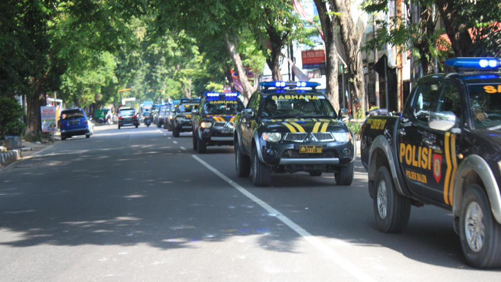 Show of force kendaraan pengamanan Pemiu 2019, dengan melakukan konvoi mengelilingi Kota Bojonegoro. Jumat (22/03/2019)