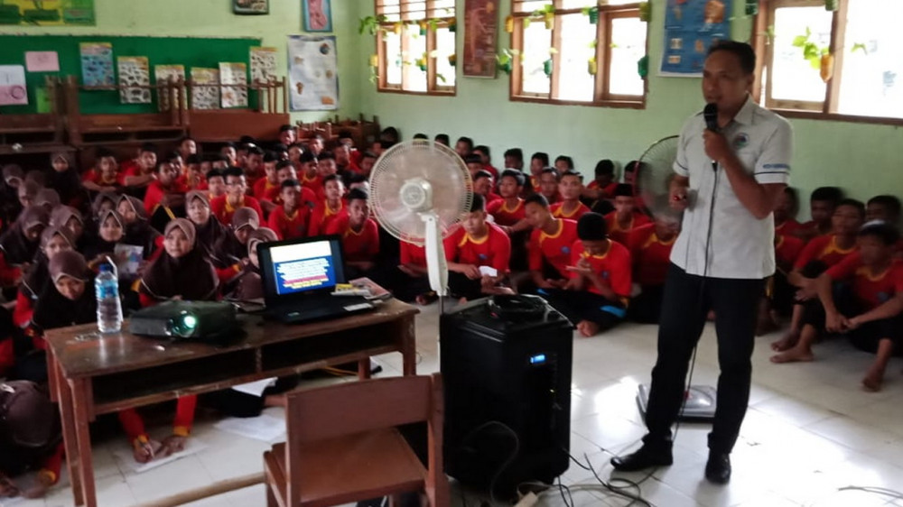 Kasat Narkoba Polres Bojonegoro, AKP Bambang Ady Tenggani SH, saat berikan penyuluhan pada siswa-siswi SMPN 1 Sukosewu. Jumat (22/03/2019)
