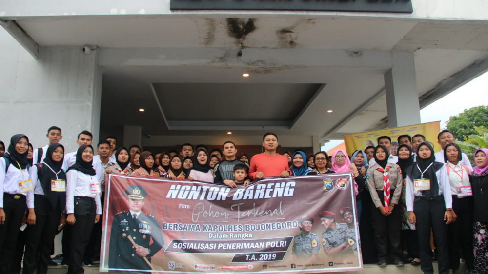 Bojonegoro - Polres Bojonegoro pada Sabtu (23/03/2019), gelar acara nonton bareng film “Pohon Terkenal,” karya sutradara Monty Tiwa, yang diputar di salah satu gedung bioskop yang ada di Jalan Hayam Wuruk Bojongoro.