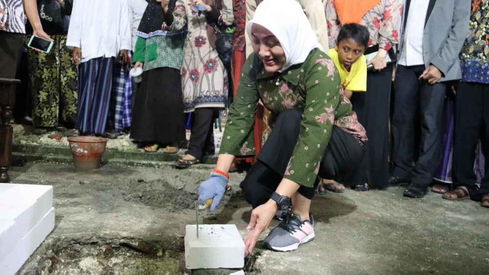 Bupati Bojonegoro Dr Hj Anna Muawanah saat laksanakan peletakan batu pertama pembangunan masjid Al Fatah Desa Selorejo Baureno. Sabtu (23/03/2019) malam