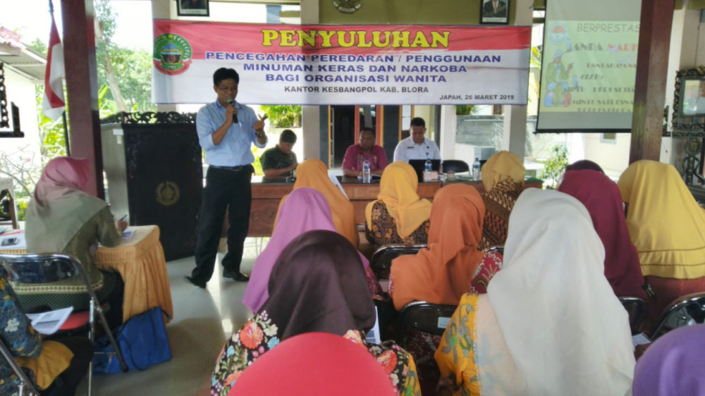 Blora - Kantor Kesatuan Bangsa dan Politik (Kesbangpol) Kabupaten Blora, pada Selasa (26/03/2019) menggelar penyuluhan tentang pencegahan peredaran dan penggunaan minuman keras dan narkotika, kepada organisasi wanita di Kecamatan Japah .