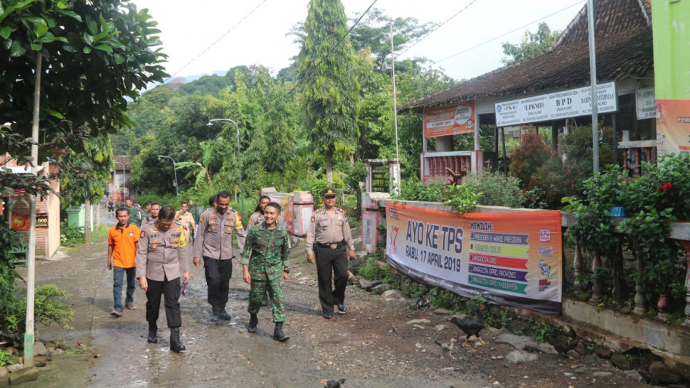 Bojonegoro - Kapolres Bojonegoro AKBP Ary Fadli SIK MH MSi, bersama Dandim 0813 Bojonegoro, Letkol Arh Redinal Dewanto SSos, didampingii sejumlah anggota Polres dan Kodim Bojonegoro, pada Selasa (26/03/2019) lakukan patroli bersama dengan menggunakan kendaran bermotor roda dua, ke lokasi Tempat Pemungutan Suara (TPS) di daerah terpencil karena memiliki medan jalan yang sulit dijangkau dengan kendaraan roda empat, yaitu di Desa Klino Kecamatan Sekar.