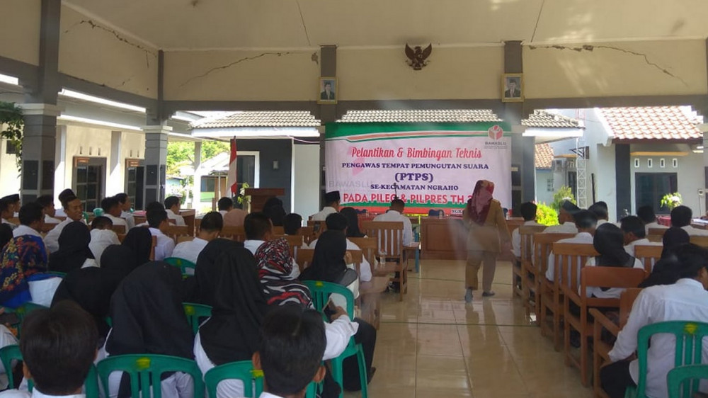 Suasana Pelantikan Pengawas Tempat Pemungutan Suara (PTPS), untuk pemilu 17 April 2019 di Kecamatan Ngraho. Senin (25/03/2019)