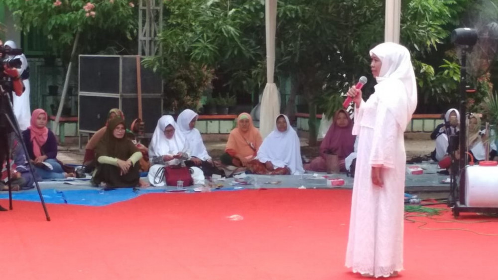 Gubernur Jawa Timur Dra Hj Khofifah Indar Pawansa MSi , saat beri sambutan dalam kunjungan di Ponpes Modern Al Fatimah Bojonegoro. Rabu (27/03/2019).