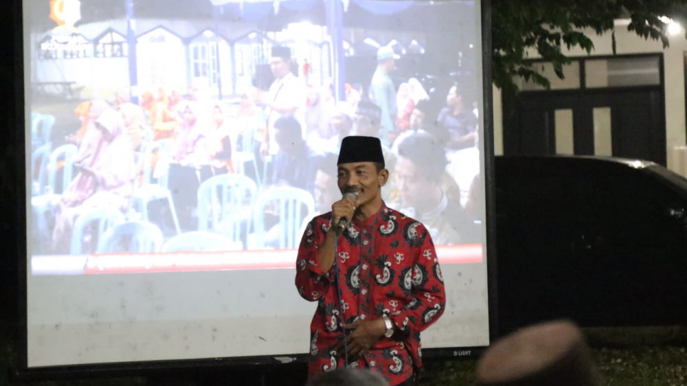 Sekcam Sumberrejo, Sahlan SAg MM, saat beri sambutan dalam acara Sambang Desa di Desa Pekuwon Kecamatan Sumberrejo. Kamis (28/03/2019) malam