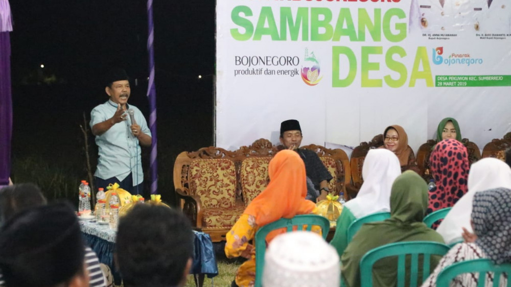 Bojonegoro - Wakil Bupati Bojonegoro, Drs Budi Irawanto MPd, pada Kamis (28/03/2019) malam, hadiri acara Sambang Desa di Desa Pekuwon Kecamatan Sumberrejo. Kegiatan tersebut dalam rangka untuk menyerap aspirasi masyarakat di desa.