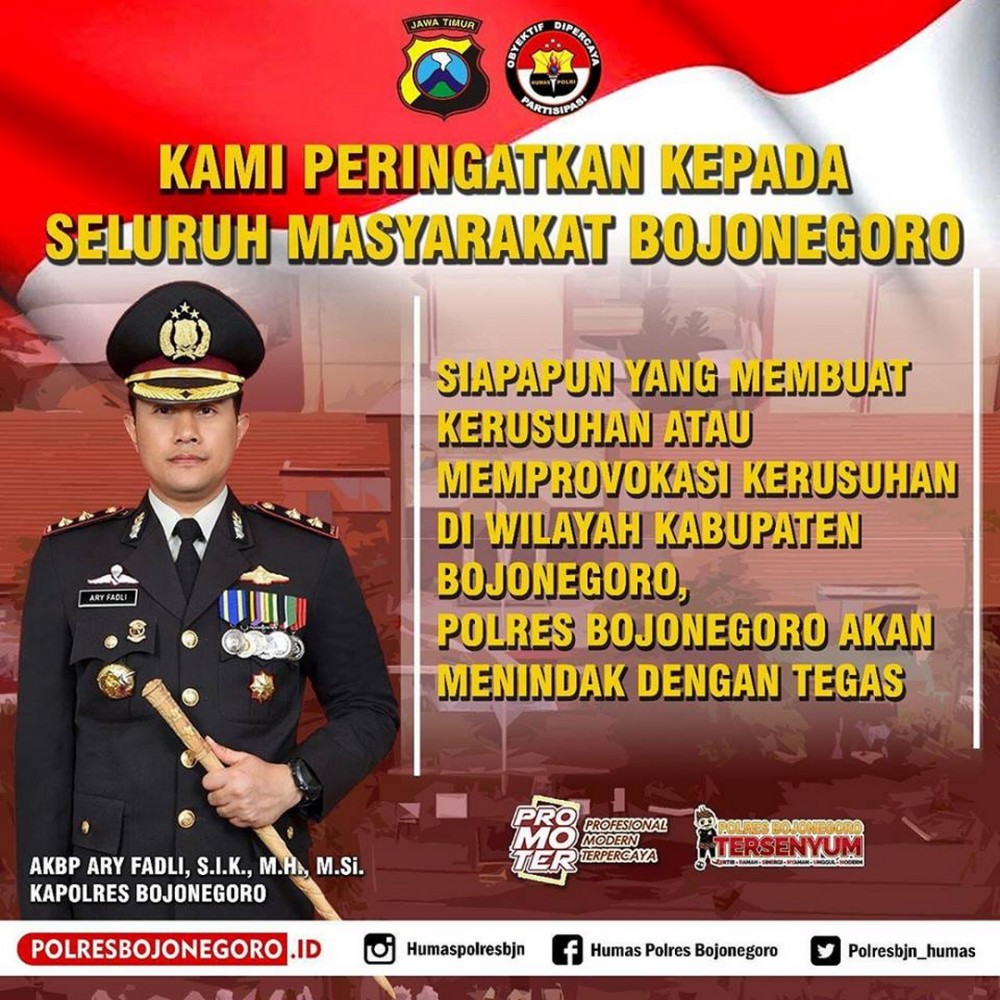 Adapun bunyi Maklumat Kapolres Bojonegoro tersebut berbunyi sebagai berikut: