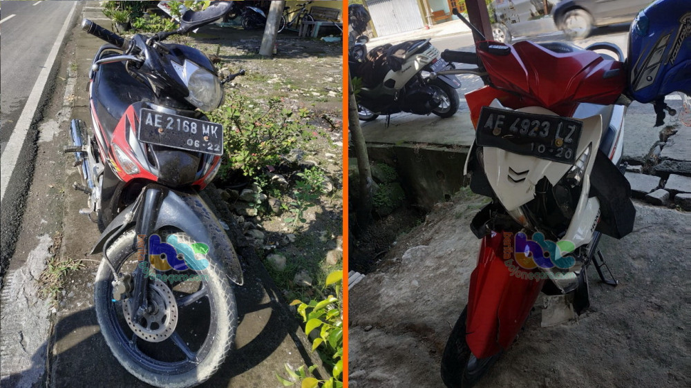 Adapun indentitas kendaraan yang terlibat laka-lantas tersebut sepeda motor Honda Supra 125 nomor polisi AE 2168 MK, yang dikendarai Agus Winarko (40), berboncengan dengan Kartini Ningsih (42), keduanya warga Desa LegokulonKecamatan Kasreman Kabupaten Ngawi, kontra sepeda motor Honda Beat nomor polisi AE 4923 LZ, yang dikendarai Ririn Sri Wahyuniningsih (23), warga Desa Dempel Kecamatan Geneng Kabupaten Ngawi.